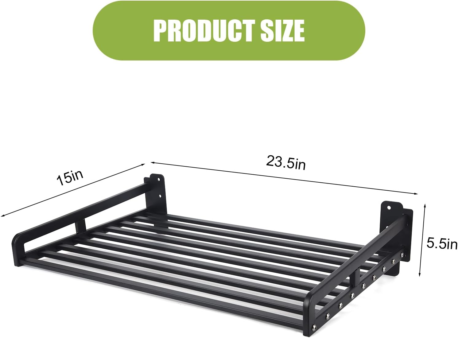 Material: Metal Color: Black Product Dimensions:23.5 x 15 inches Package size: 24 x 5.8 x 2.65 inches Packing weight: 5.4 Ib Microwave shelf wall mount with its selection of metal materials, rugged construction, spacious size and high load bearing capacity, as well as well designed rounded corner safety details, becomes a good choice for kitchen space optimization. Microwave wall mount not only provide a simple installation process and detailed installation instructions, ensuring safety and ease of use, but their versatility and universal design make them a practical solution for improving storage efficiency in home and commercial Spaces and creating the look of a modern kitchen.
