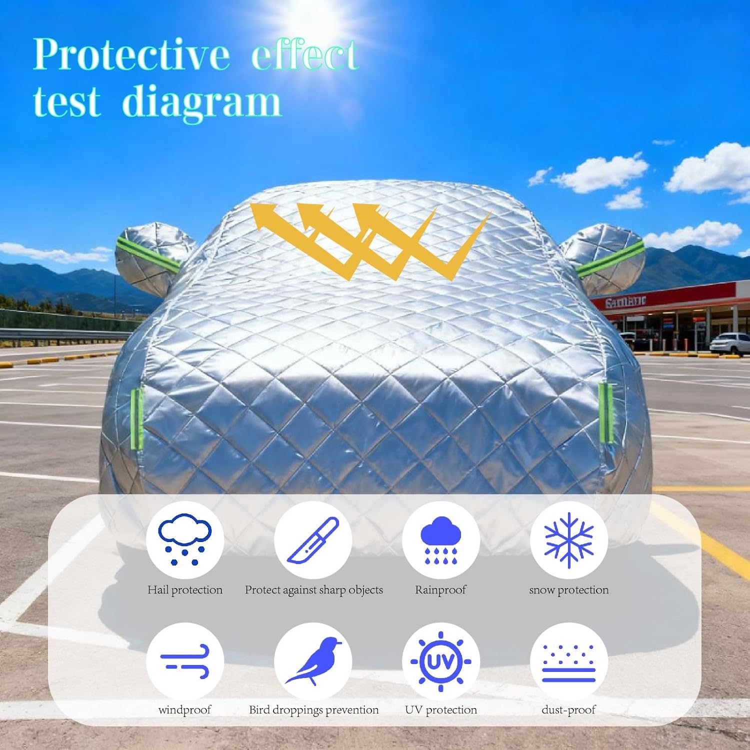 Product Name: Hail Protector Car Cover, Hail Proof Car Cover, Hail Proof Car Cover, 5 Layers Thickened cotton All Weather Waterproof with Reflective Strips Material: Cotton Package List: 1 car cover, 1 storage bag Features: Rainproof, hailproof, abrasion-resistant, tear-resistant, extends service life. If you cannot find a suitable car cover, please contact us by email, and we will provide you with the best solution within 24 hours. The default zippered side door is located on the left side of the vehicle. We have over 10 years of experience in producing outdoor car covers and support custom car covers for all vehicle models.