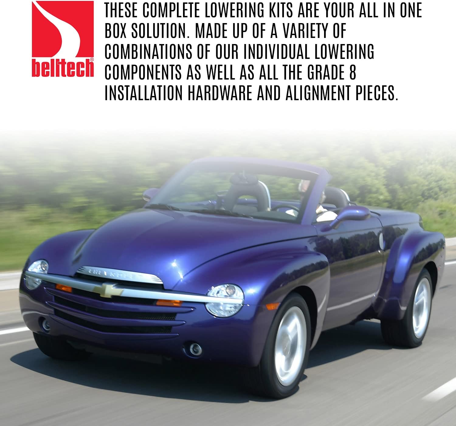 Are you ready to lower your truck, SUV or muscle car? Let the experts with years of experience ease your pain by strategically putting together a complete lowering solution for you and your vehicle. Everything you need to lower your ride is included with your Belltech complete Lowering Kits. Plus, some lowering kits can be customized with two types of performance shocks: Nitro Drop 2 Shocks or the Street Performance Shocks. Both options provide a great balance between sport and comfort. With Belltech celebrating its 35th year of producing the best complete, as well as individual lowering solutions, you can feel comfortable knowing that we have and continue to provide the best material, research, development, and Quality Control in the industry. Note: Kits with a ND after the part number are equipped with a complete set of Nitro Drop 2 shocks. Kits with a SP after the part number are equipped with a complete set of Street performance shocks. If there is not an ND or SP at the end of your kit number it will not be equipped with shocks.