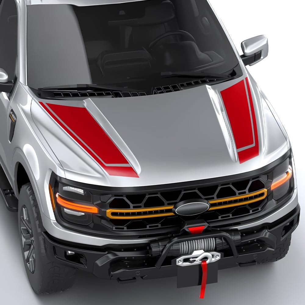 Compatible Model Compatible with Ford F150 Raptor 2015-2020 Size-- 100CM Long (about 39.4 Inches Long) each Single Piece Made of high quality KK Vinyl with up 3-5 years life span Easy Installation, Comes with adhesive on the back Enviromental Friendly material, will not do harm to the surface when being removed Package Include: HOOD STRIPES KIT Installation Tip : Step1:prepare the spary bottle,rag and scraper ,to totally clean the application area. Step2: peel from the bottom sheet and let the decal stay on the transfering film Step3:Scrape the water and air bubbles out from center to corner by using a scraper. Step4:Use a heat gun,hair dryer,or lighter to flatten and affix the uneven place.