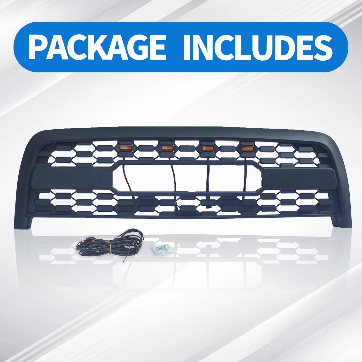 | Included Components | 1 LED wire harness, 1 front grille, 4 LED amber lights |