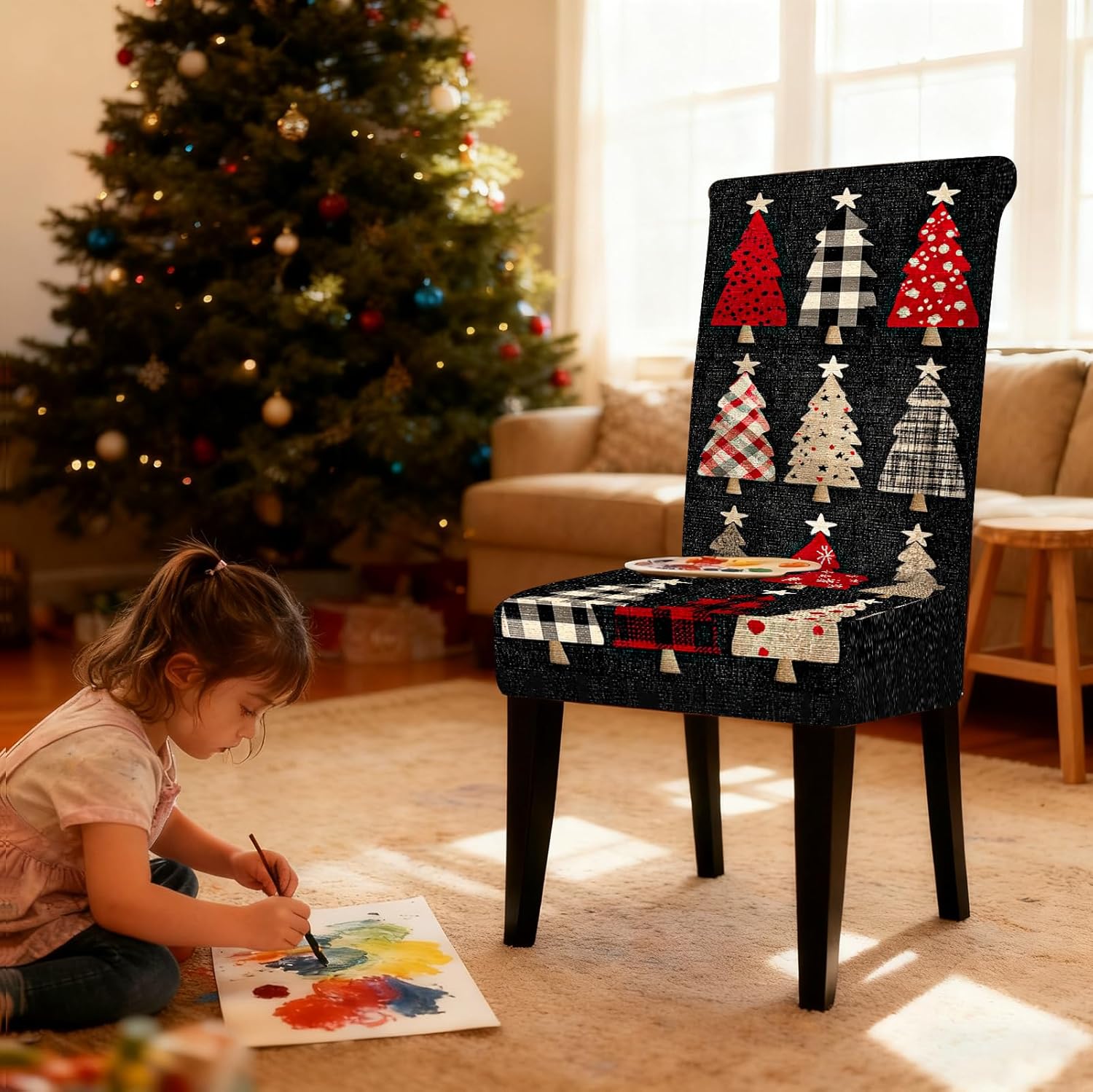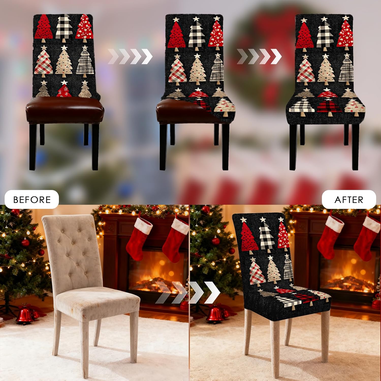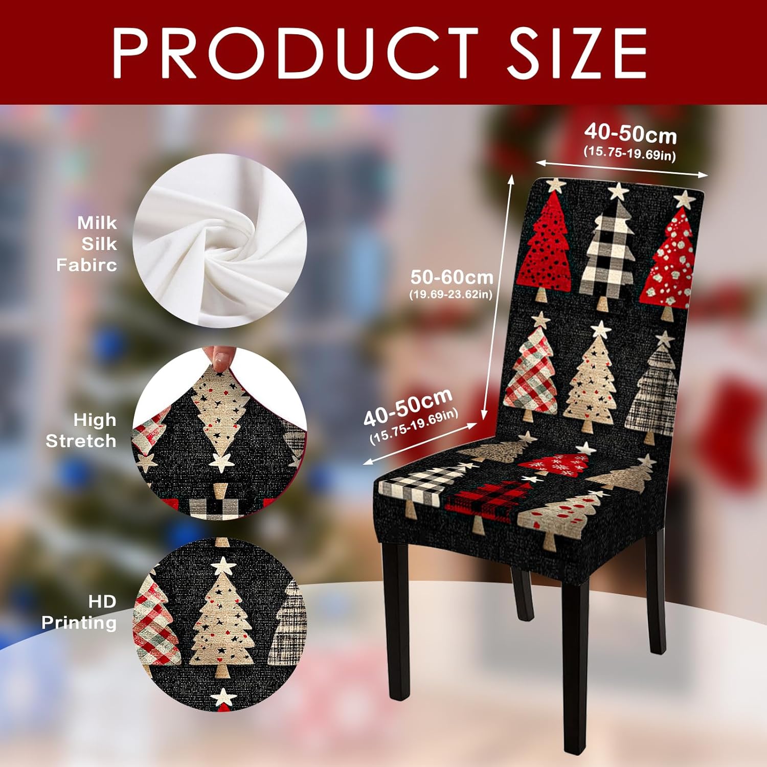Nuxovilar Patterned Christmas Tree Chair Covers Stretch 23.6x70 Inches - Dining Chair Slipcovers Set of 6, Diverse Xmas Decor for Home Parties Holiday Events