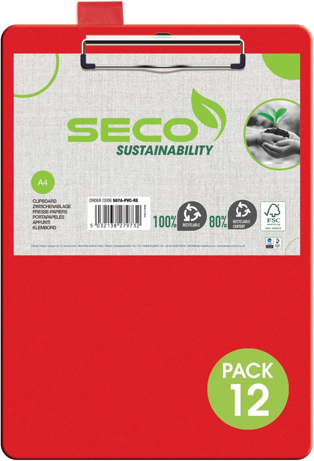 Eco friendly Seco ECO PVC Covered Foldover Clipboard with Low Profile Clip - Blue (Pack of 12) Sustainable Eco clip boards / 80% recycled content / 100% FSC Board / Sturdy strong Clip – holds up to 40 sheets / Help protect the environment