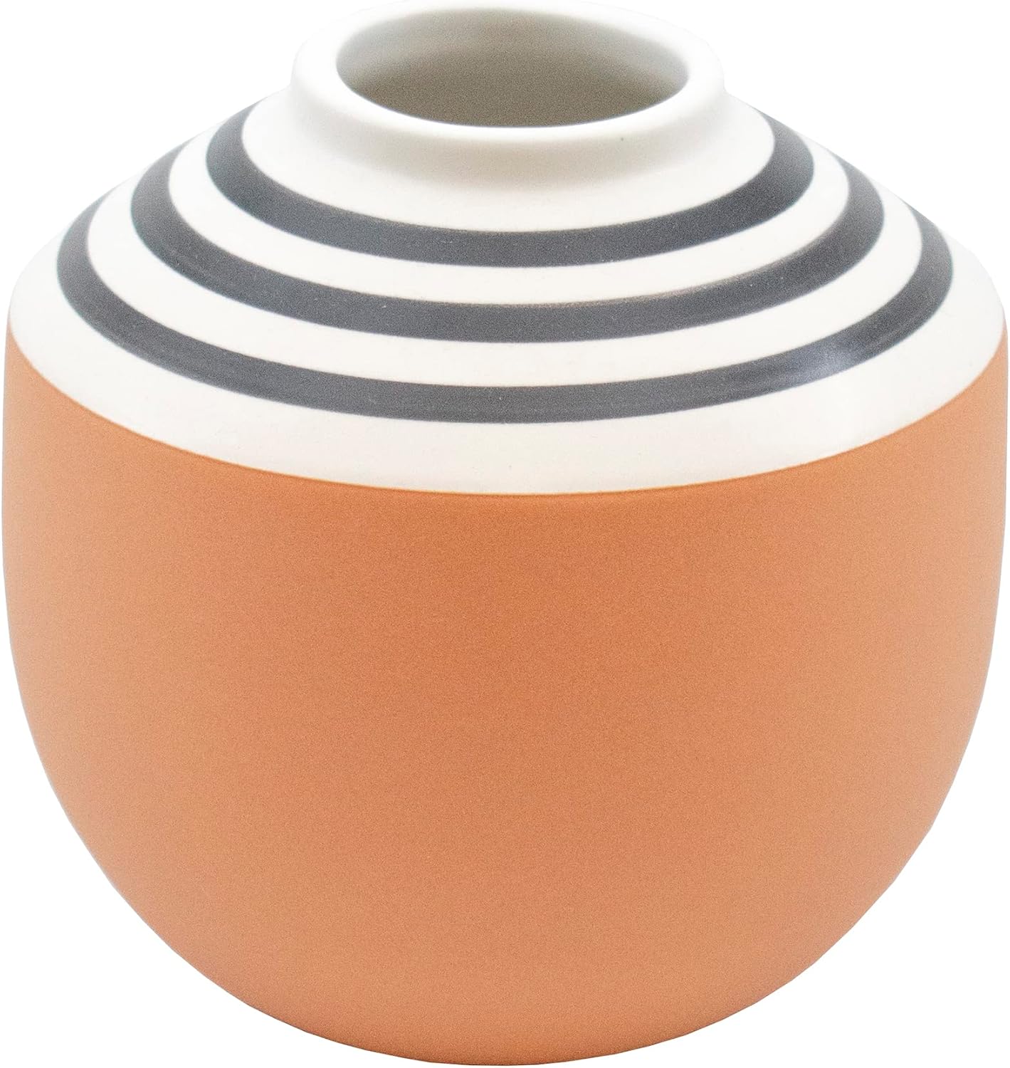 Exciting collection of various-sized vases and potter plants from our Boho Brown Terracotta Collection!From our Boho Brown Terracotta Collection, this brown terracotta ceramic vase features a hand-painted white and black matte design.Vase measures 5" H X 5" D, making it ideal for real (fresh or dried) flowers as well as faux flowers and plants. Vase ships encased in a thick, foam-lined corrugated box.Pairs well with vibrant or neutral colored flowers and can be used on any flat surface including countertops, bookshelves, tables, window sills and desks. The white and black pattern on this vase is hand painted so slight variations should be expected.The Boho Brown Terracotta Collection features vases and planters where brown terracotta ceramic is hand painted in matte colors inspired by Bohemian style.Design: White & Black PatternQuantity: 1Size: 5" H X 5" D