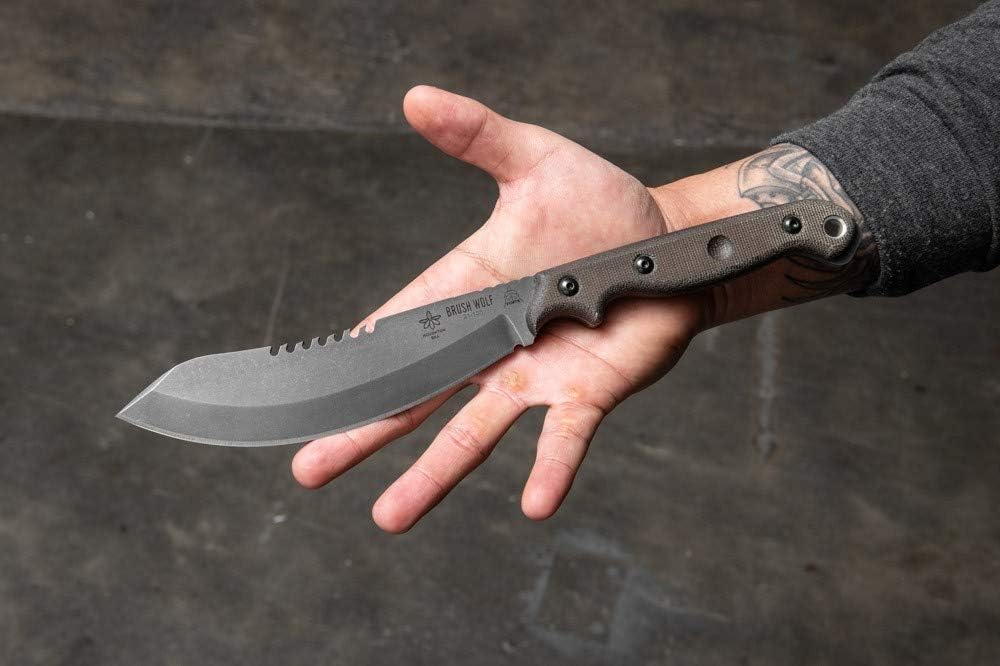 Tops Knives Brush Wolf knife with Leather Sheath.