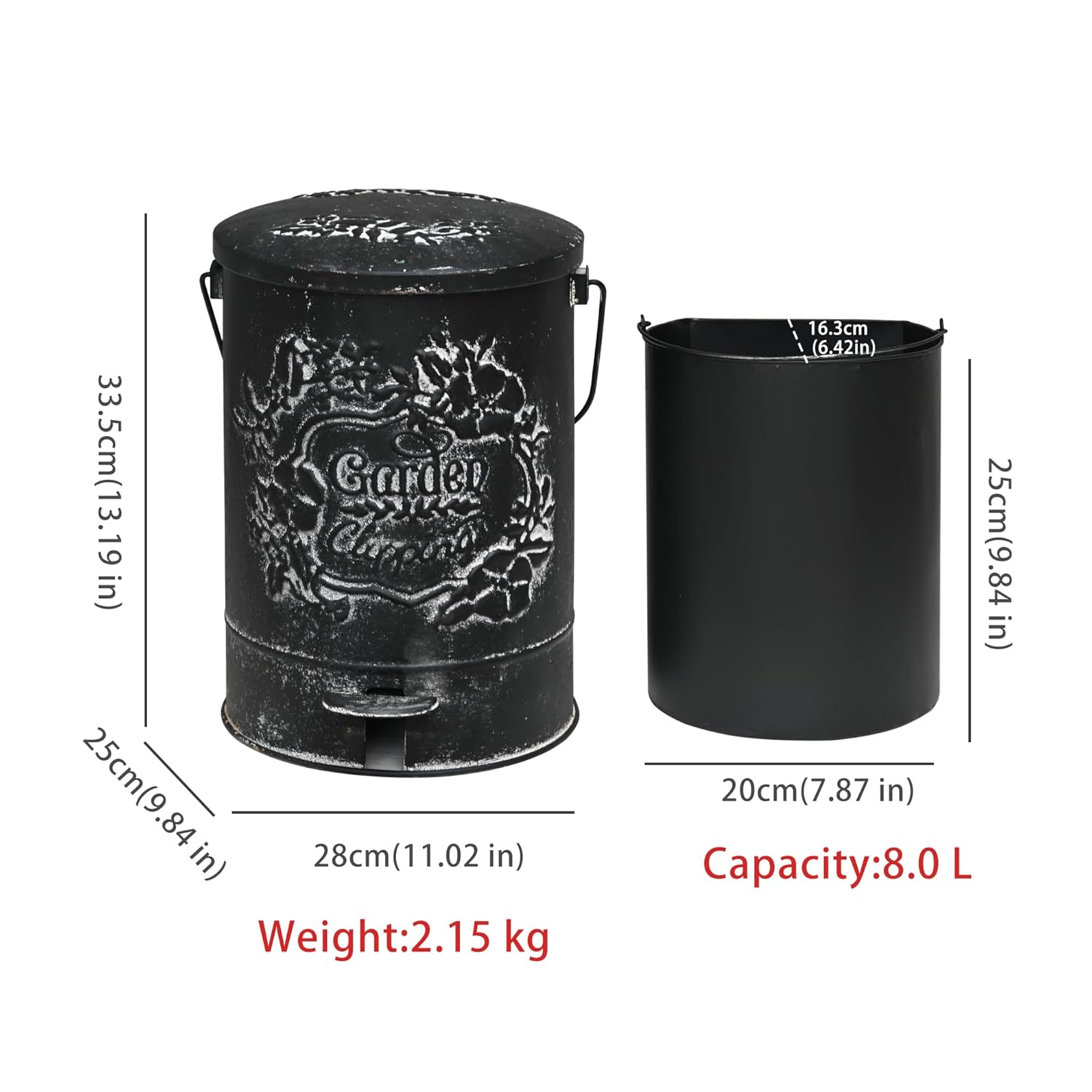 【Vintage Design】 The metal trash can is mainly made of high-quality iron. The vintage shell design makes it have excellent durability. The creative waste bins has unique flower and bird patterns, which can feel the artistic atmosphere indoors and outdoors
